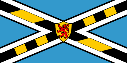 Each component of the flag carries a distinct meaning that reflects the town’s role in Prince Edward Island’s development and its lasting significance. The blue background represents the sky and possibly the waters surrounding Prince Edward Island, emphasizing the town’s maritime connections and geographical location on the island’s southern coast. The black saltire with gold rectangles symbolizes the Confederation Bridge, which connects PEI to mainland Canada. It also alludes to the town’s railway heritage, as Borden-Carleton was historically a key transportation hub before the bridge was constructed. The white border around the saltire highlights the structure and organization of transportation networks, reinforcing the town’s legacy as a major transit point. The central shield with a red lion is a direct reference to the Coat of Arms of Nova Scotia, linking Borden-Carleton to Scottish heritage and Prince Edward Island’s British colonial history.
