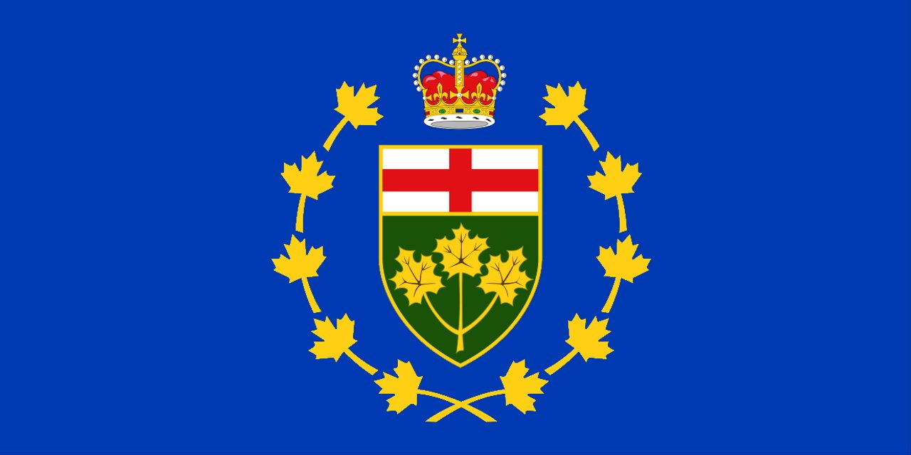 Surrounding the shield is a wreath of ten golden maple leaves, arranged in an oval. The maple leaf is a widely recognized symbol of Canada, and its golden color signifies honour, excellence, and authority. The ten leaves likely represent the ten provinces that formed the Canadian Confederation at the time the current structure of vice-regal flags was being formalized. The circular arrangement suggests unity, continuity, and the lieutenant governor’s unifying role across all aspects of Ontario society.