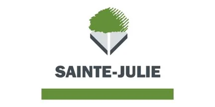 Below the logo, the municipality's name, Sainte-Julie, is presented in bold, dark-grey uppercase letters. The font is modern and sans-serif, projecting clarity, accessibility, and strength. This lettering serves both a practical function—easy recognition—and a symbolic one, emphasizing pride in the community’s identity.